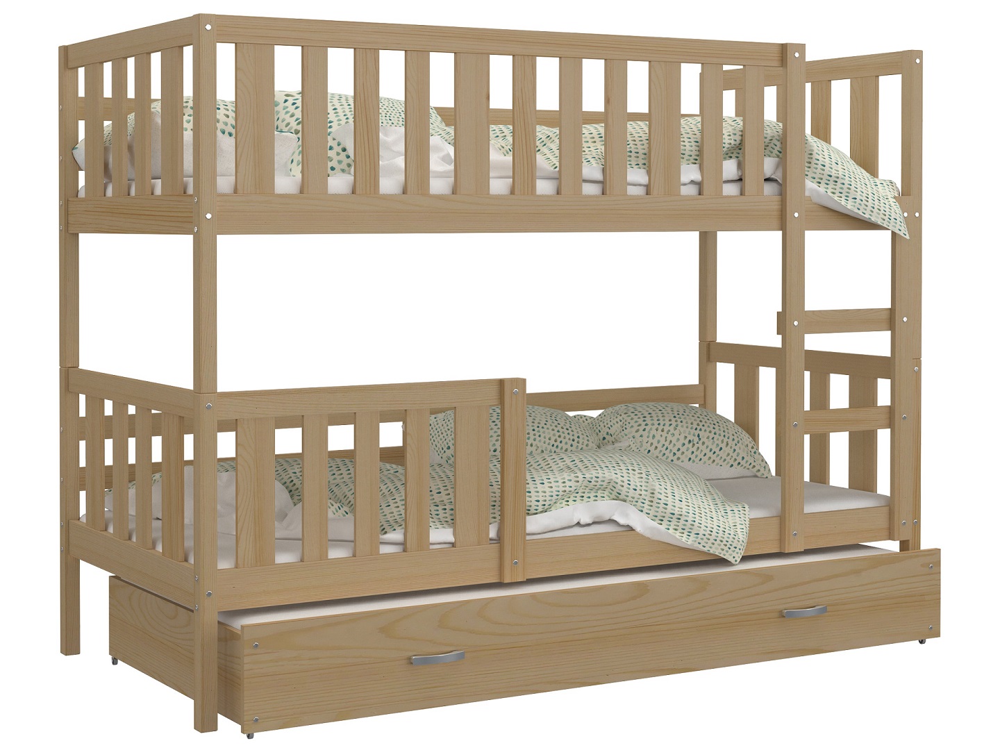 Sängen är gjord av massiv furu vilket gör den stabil och rejäl. Idealisk att både leka som sova i. Stegen placerar du på den sida som du tycker passar bäst i just ditt rum. Sängen har en praktisk förvaringslåda med extrasängfunktion. Perfekt för syskonen som delar rum, eller för barnen som vill ha kompisar som sover över ofta. Madrassen till extrasängen ingår dessutom!