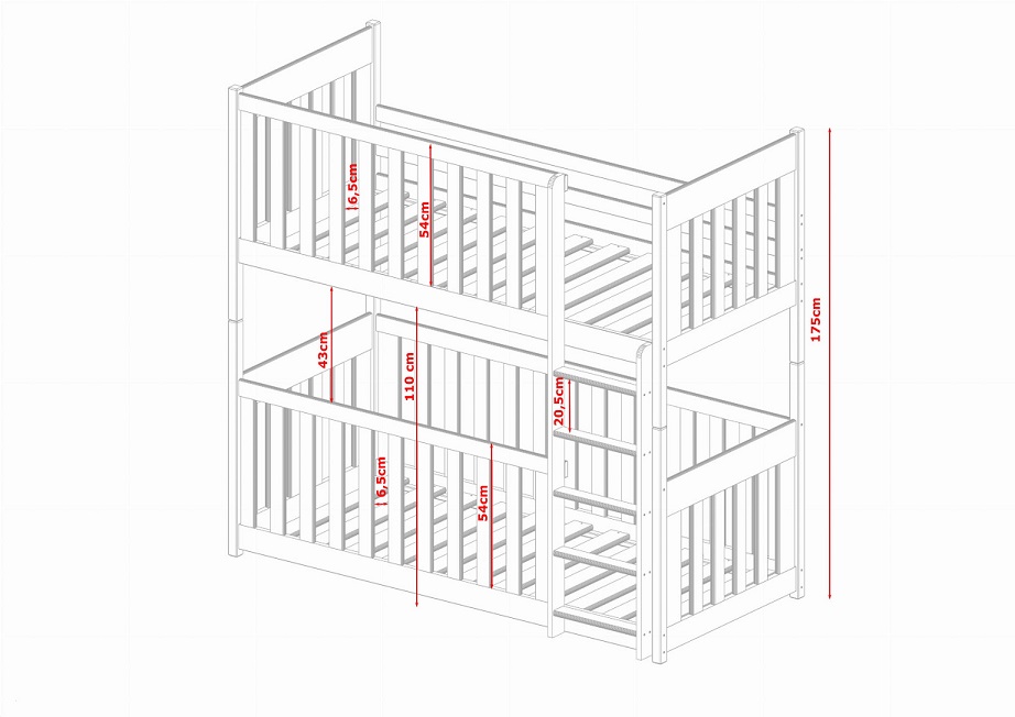 - Stödbrädornas höjd: 54 cm. Avstånd mellan spjälor 6,5 cm.