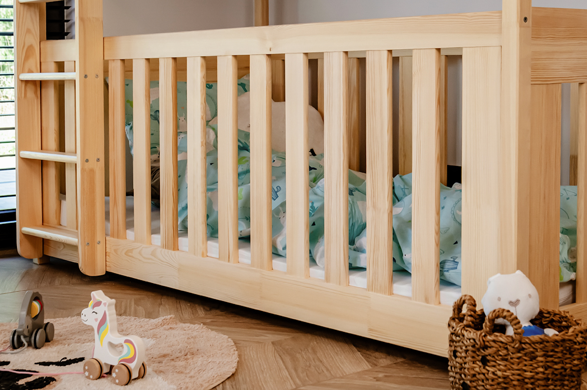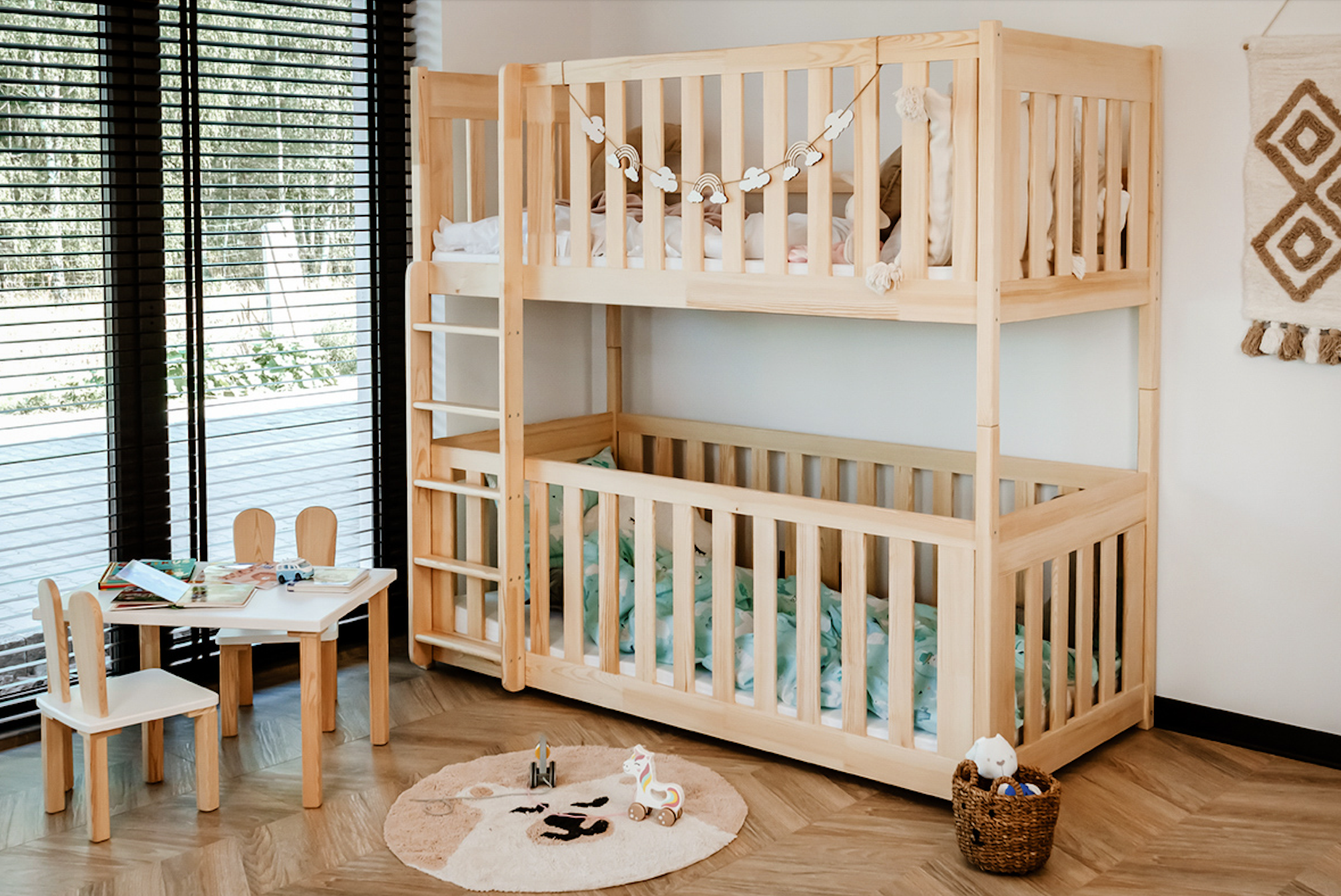 Sängarna tillverkas enligt standarden EN-747-1: 2012 + A1: 2015 i vår fabrik i Europa som har de högsta säkerhetsstandarderna för produktion av barnsängar. och kontrollerar varje steg från det att timret kommer in i fabriken till att en färdig produkt lämnar. Sängarna lackeras tre gånger med ekologisk, miljövänlig och vattenbaserad färg som följer normen EN 71-3:2019.