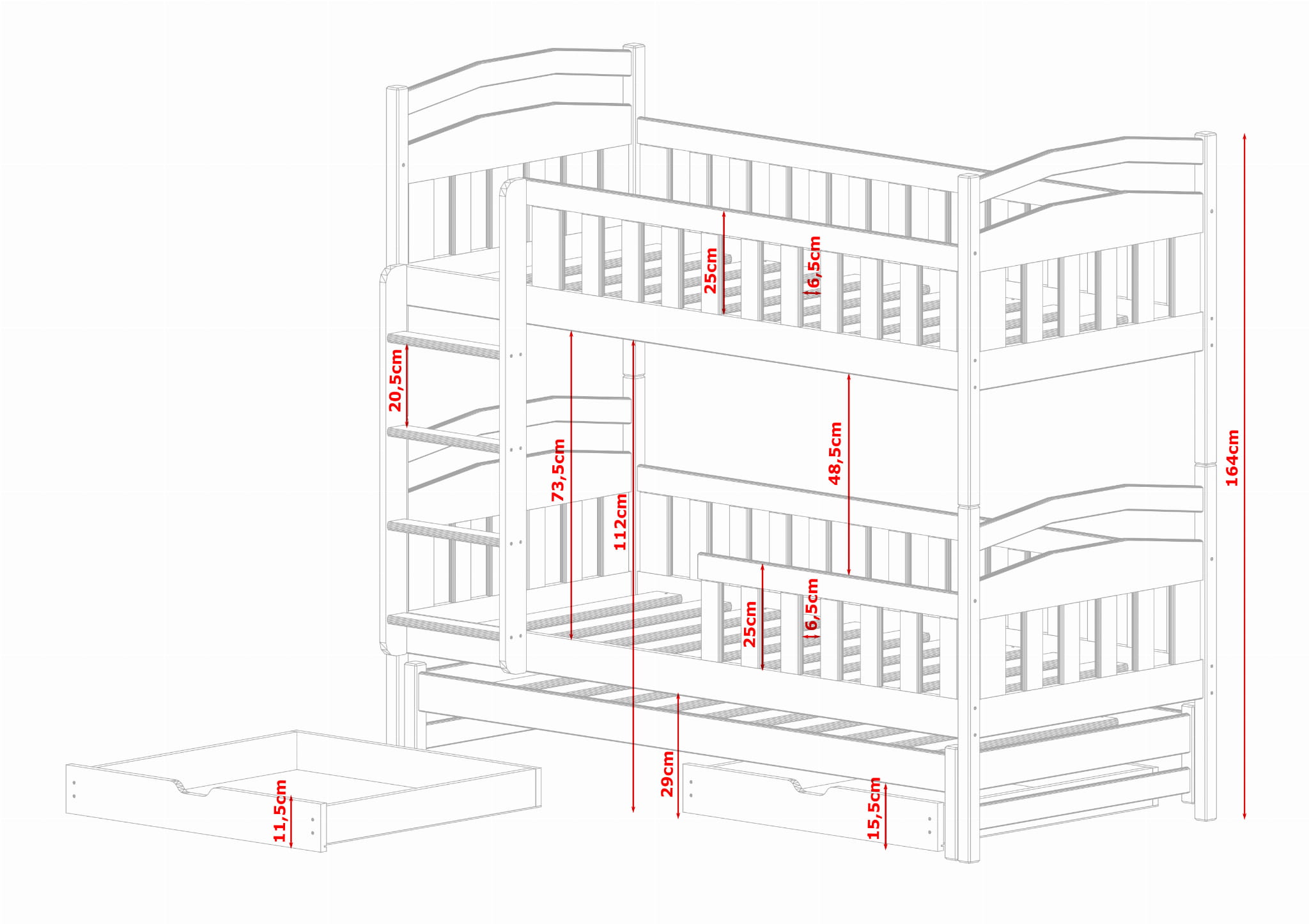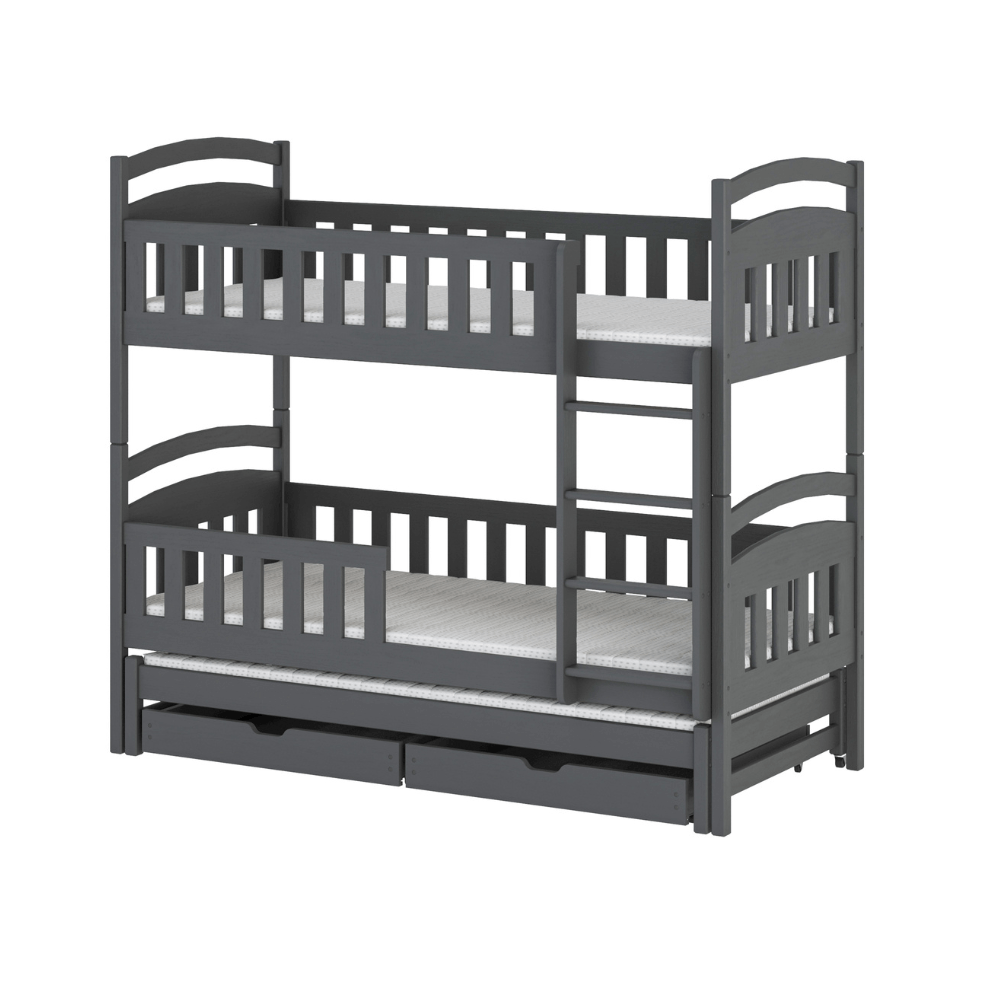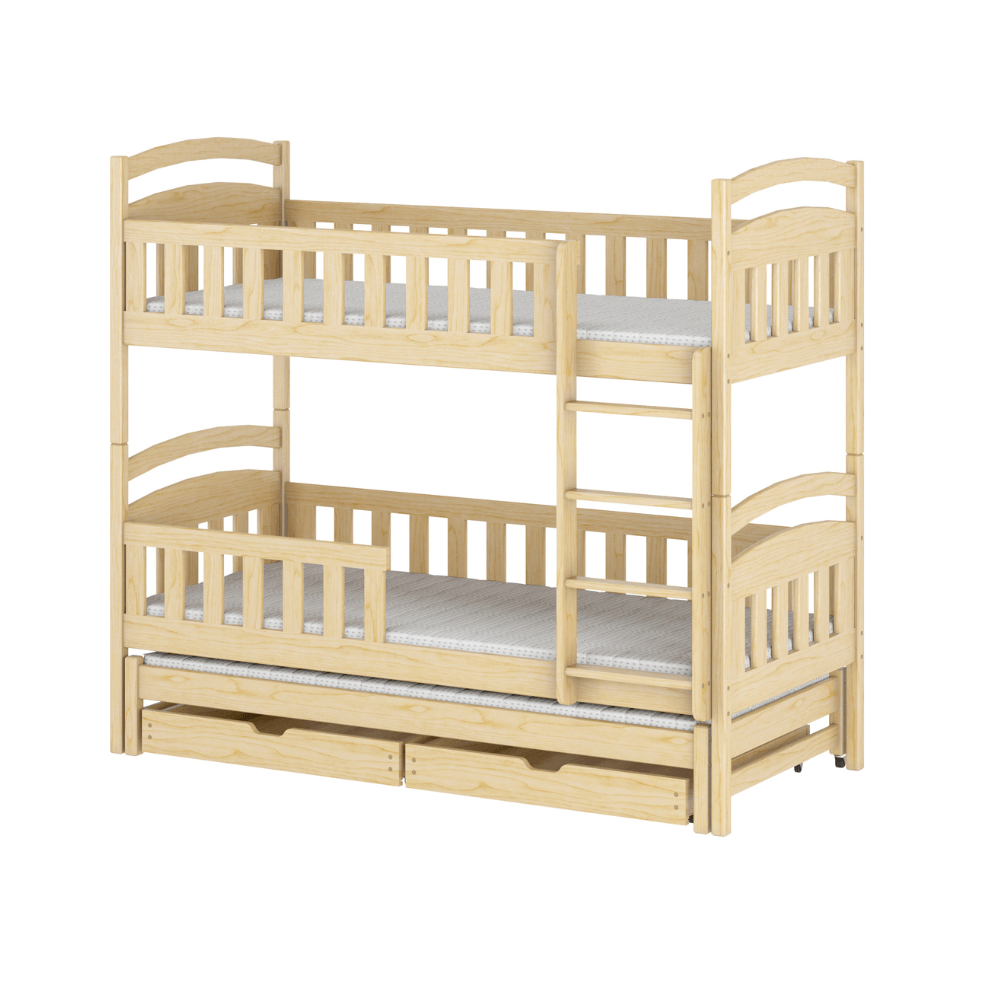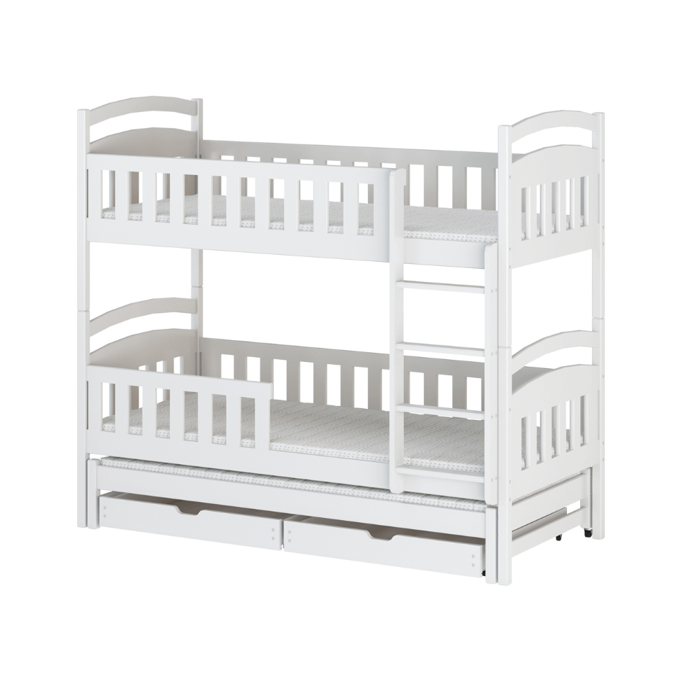 Madrasser ingår ej, men finns att köpa i vårt stora utbud! Vi rekommenderar en skummadrass med en tjocklek på 10-12 cm för den översta sängarna och max 8 cm för extrasängen. Om madrassen till extrasängen är tjockare än 8 cm kommer extrasängen inte kunna rullas ut.