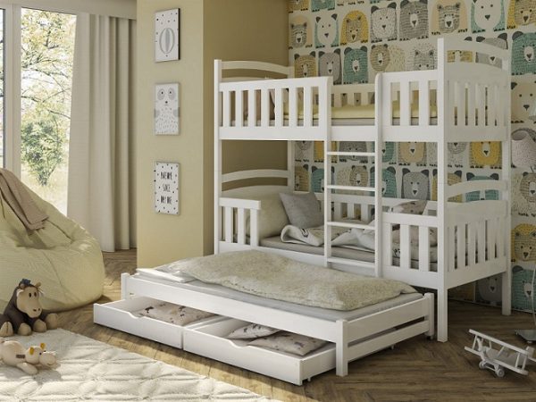Våningssäng med stödbräda och tre sängar Liam