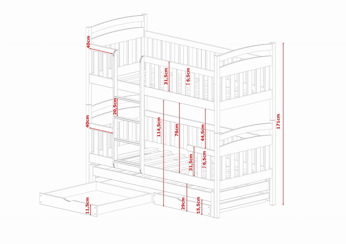 Madrasser ingår ej, men finns att köpa i vårt stora utbud! Vi rekommenderar en skummadrass med en tjocklek på 10-12 cm för den översta sängarna och max 8 cm för extrasängen. Om madrassen till extrasängen är tjockare än 8 cm kommer extrasängen inte kunna rullas ut.