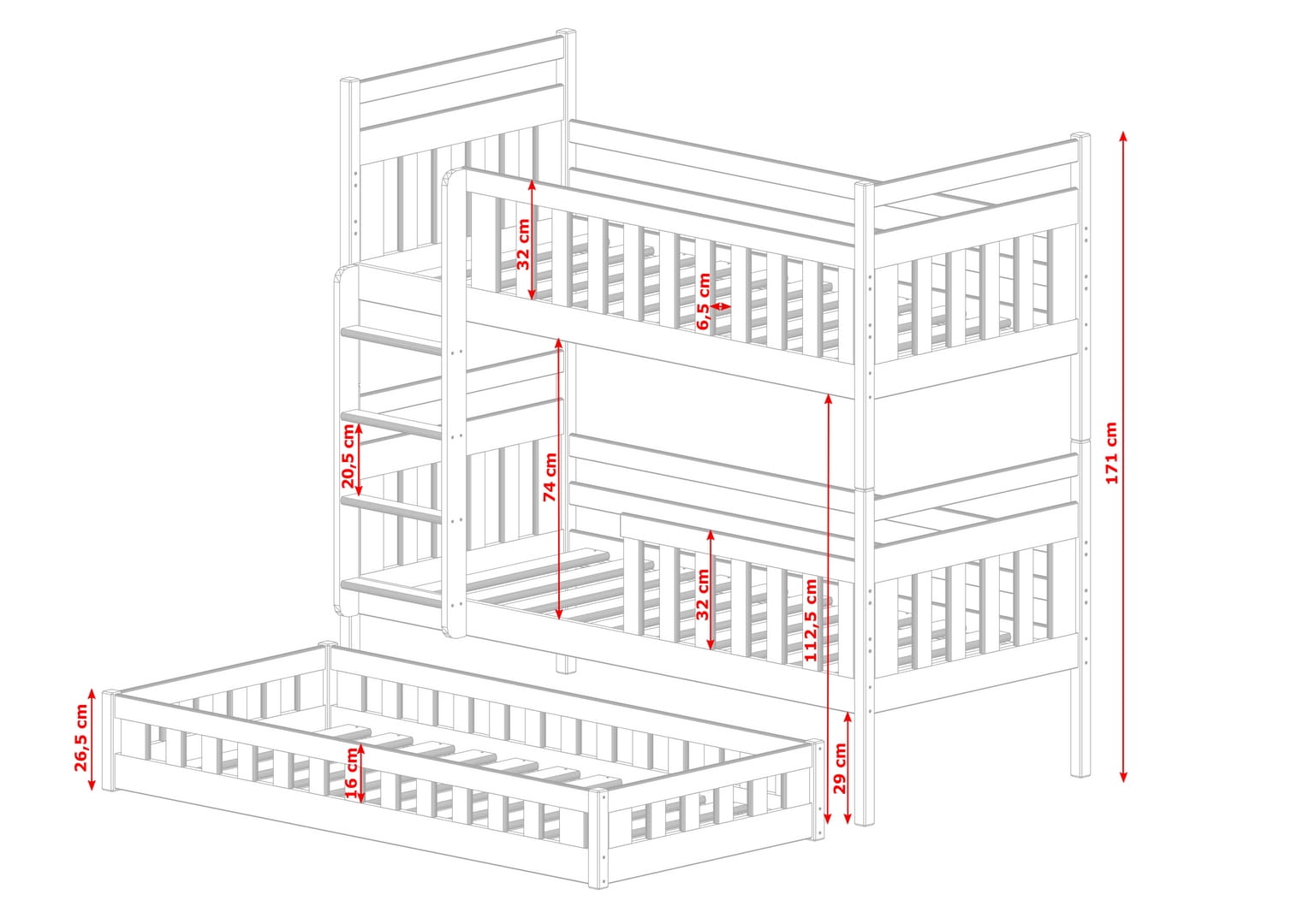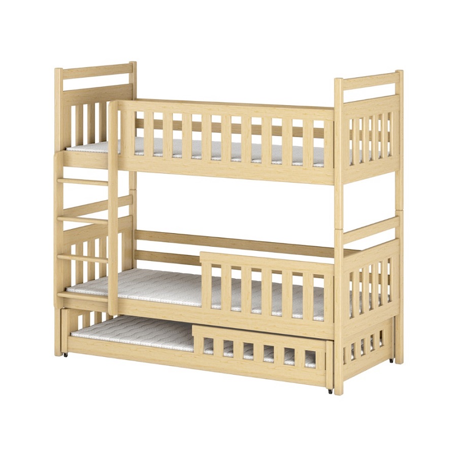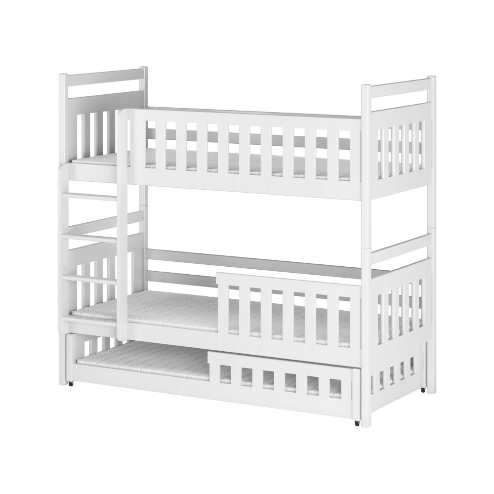 Madrasser ingår ej, men finns att köpa i vårt stora utbud! Vi rekommenderar en skummadrass med en tjocklek på 10-12 cm för den översta sängarna och max 8 cm för extrasängen. Om madrassen till extrasängen är tjockare än 8 cm kommer extrasängen inte kunna rullas ut.