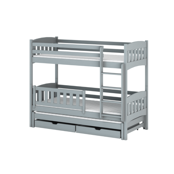 Madrasser ingår ej, men finns att köpa i vårt stora utbud! Vi rekommenderar en skummadrass med en tjocklek på 10-12 cm för den översta sängarna och max 8 cm för extrasängen. Om madrassen till extrasängen är tjockare än 8 cm kommer extrasängen inte kunna rullas ut.