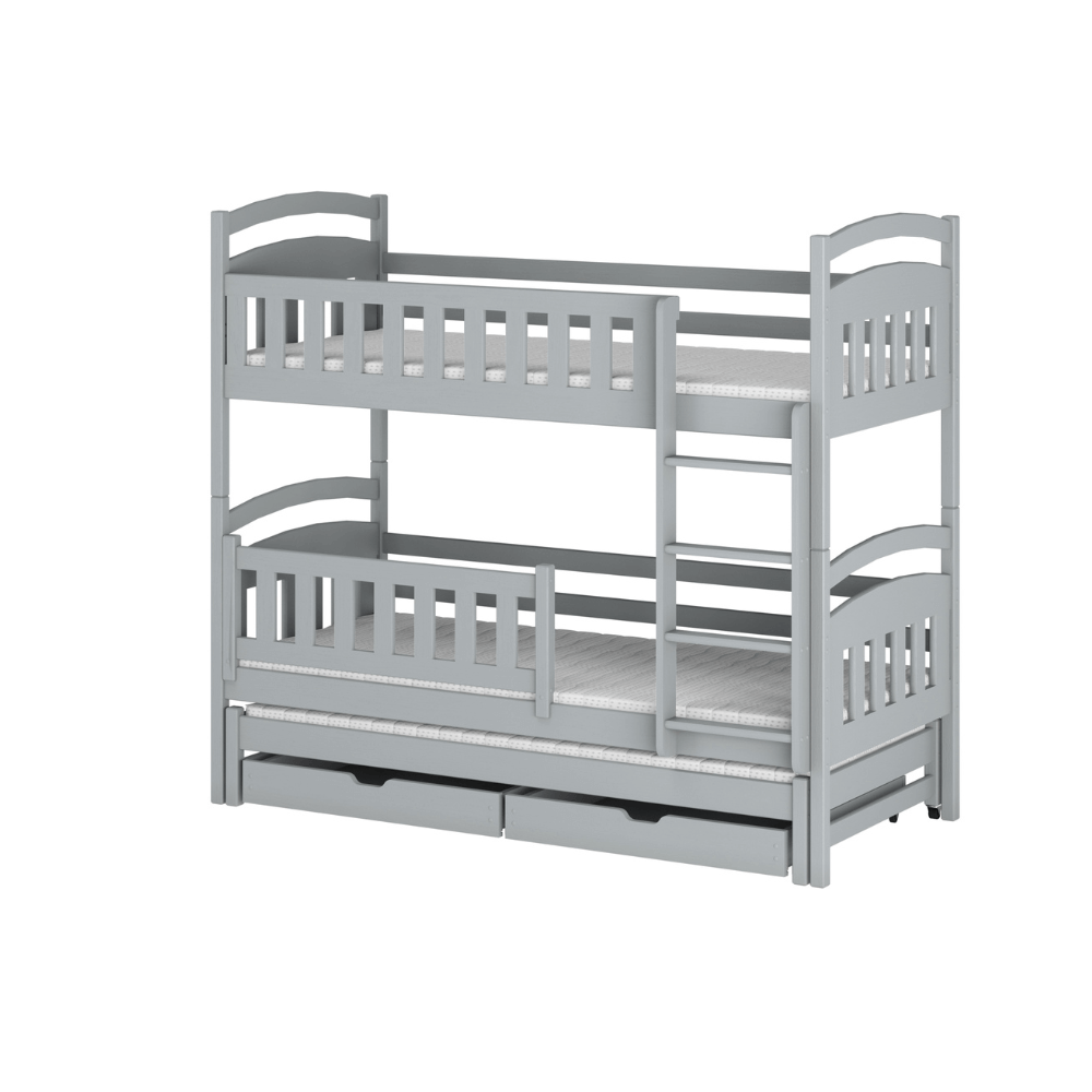 Madrasser ingår ej, men finns att köpa i vårt stora utbud! Vi rekommenderar en skummadrass med en tjocklek på 10-12 cm för den översta sängarna och max 8 cm för extrasängen. Om madrassen till extrasängen är tjockare än 8 cm kommer extrasängen inte kunna rullas ut.