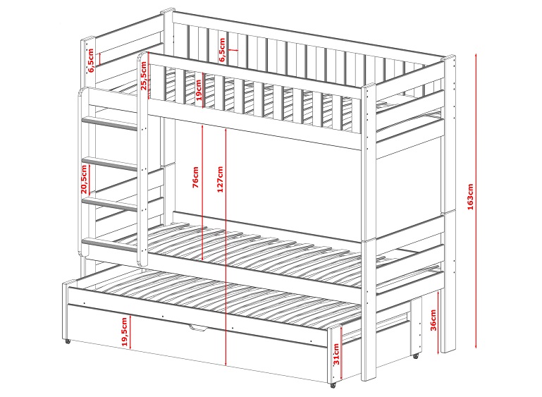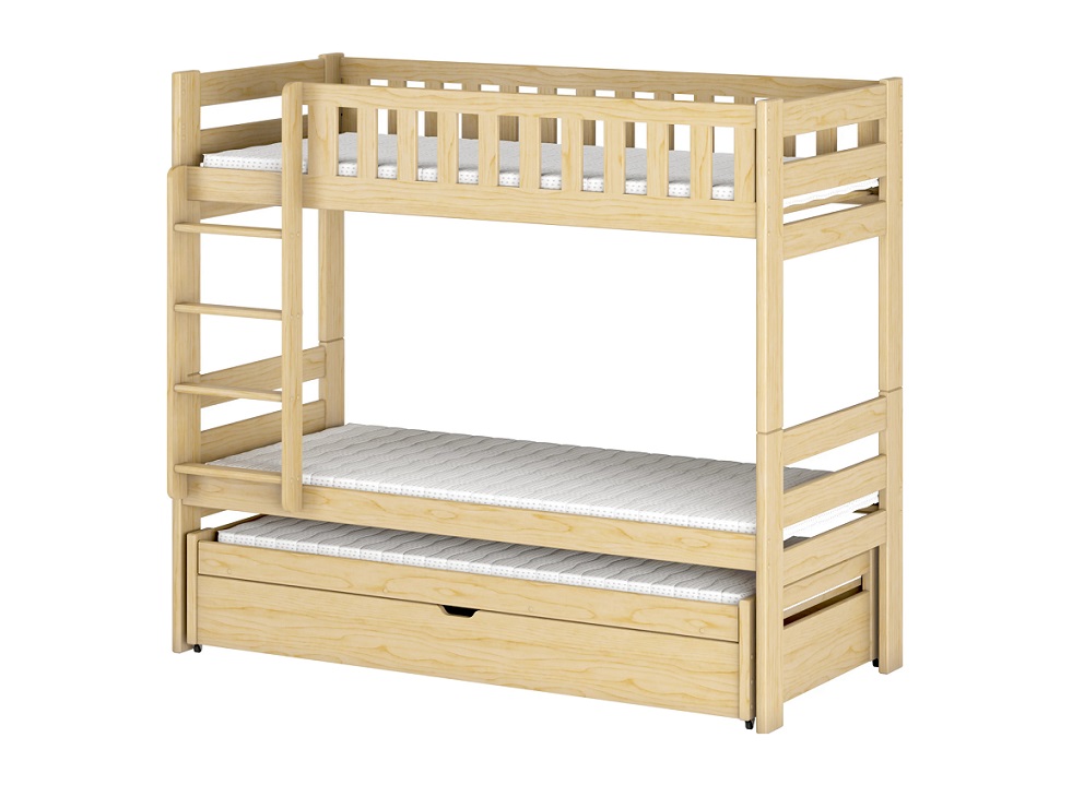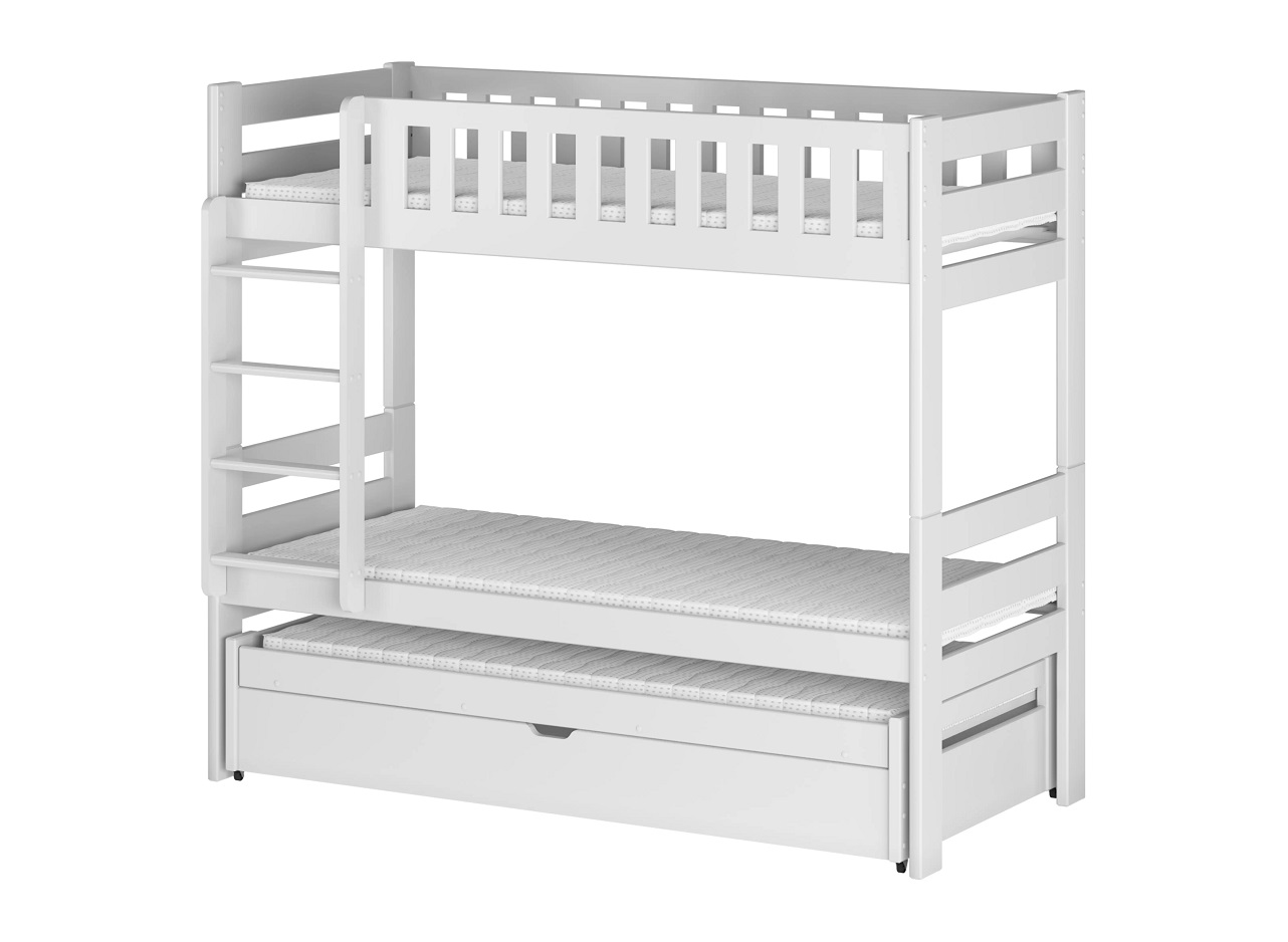 Madrasser ingår ej, men finns att köpa i vårt stora utbud! Vi rekommenderar en skummadrass med en tjocklek på 10-12 cm för den översta sängarna och max 8 cm för extrasängen. Om madrassen till extrasängen är tjockare än 8 cm kommer extrasängen inte kunna rullas ut.