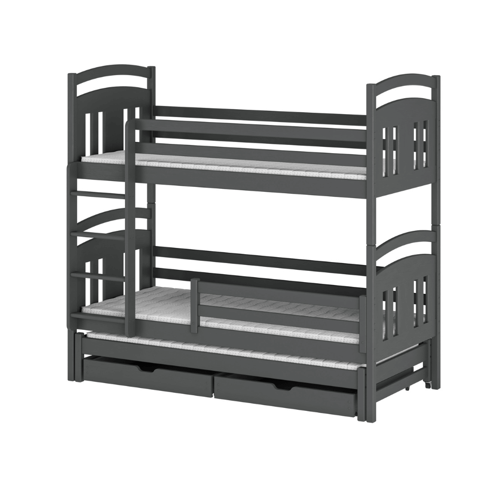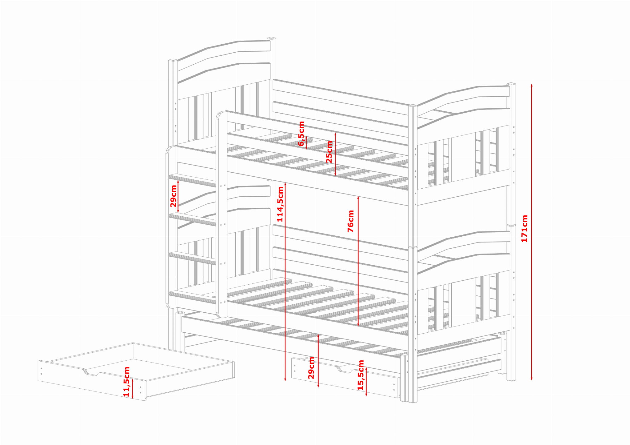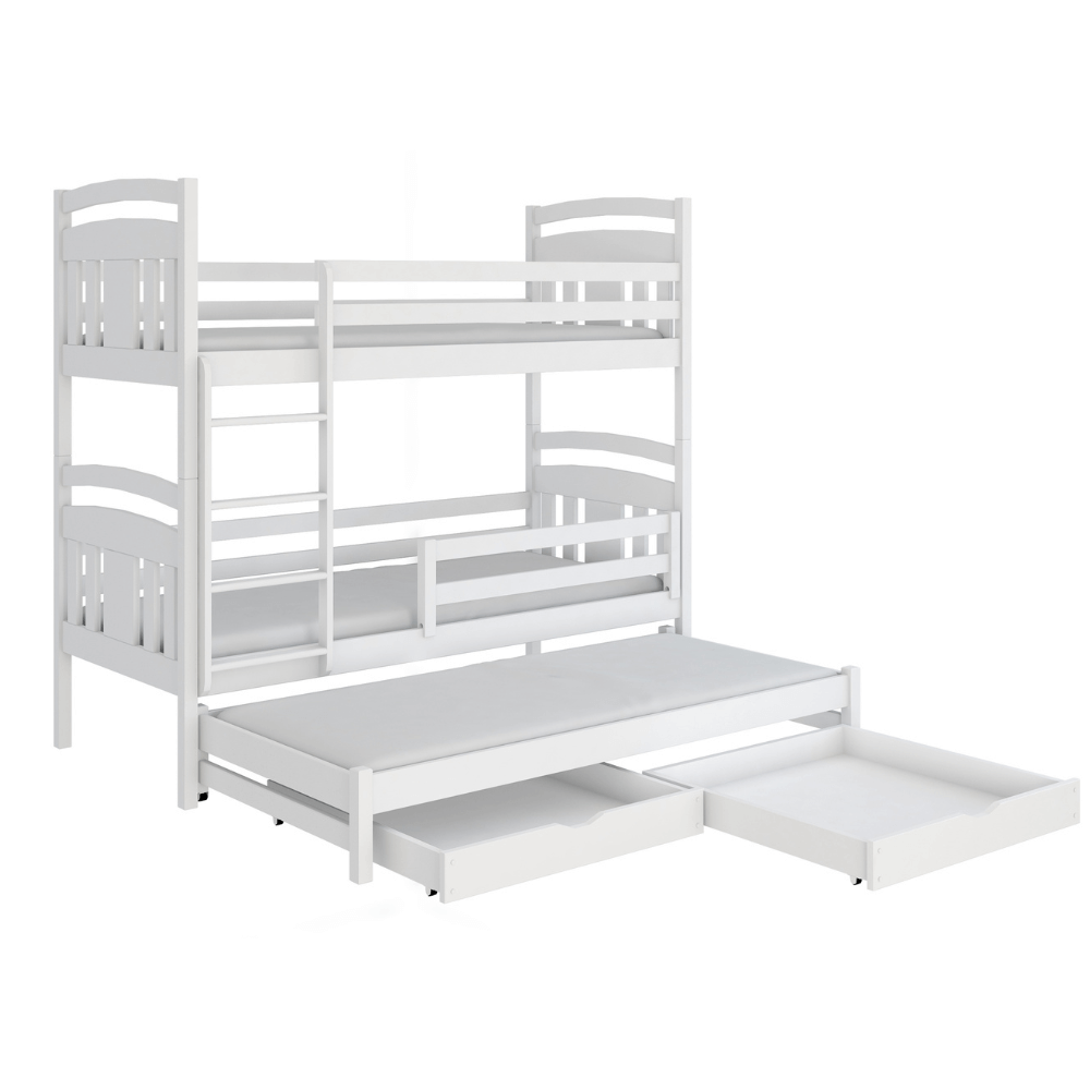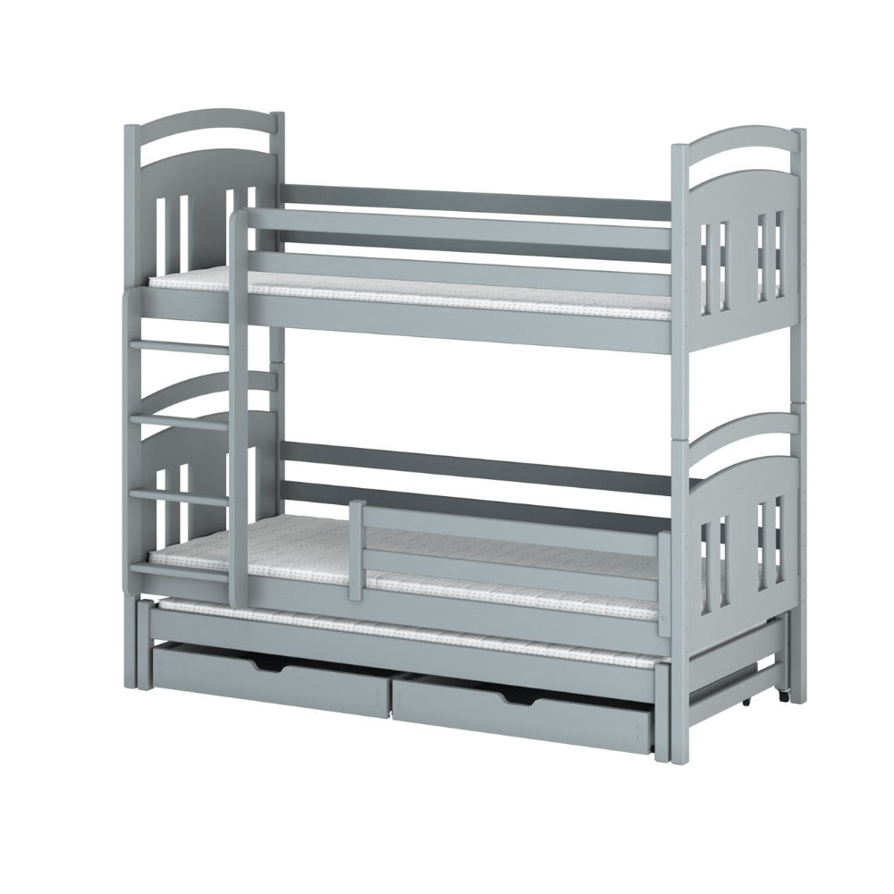 Madrasser ingår ej, men finns att köpa i vårt stora utbud! Vi rekommenderar en skummadrass med en tjocklek på 10-12 cm för den översta sängarna och max 8 cm för extrasängen. Om madrassen till extrasängen är tjockare än 8 cm kommer extrasängen inte kunna rullas ut.