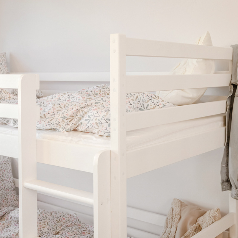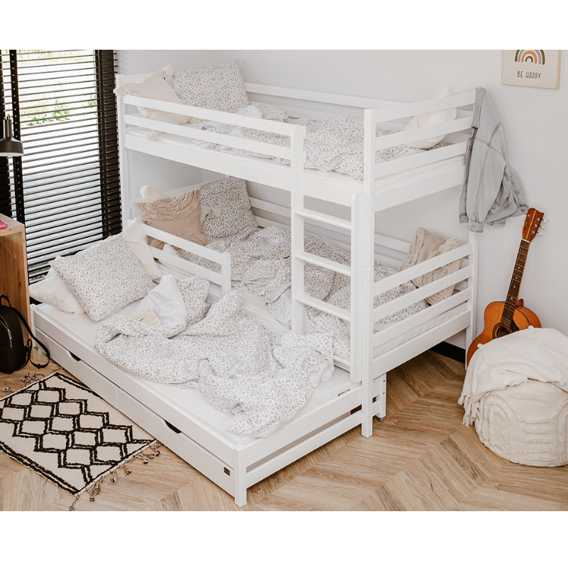 Madrasser ingår ej, men finns att köpa i vårt stora utbud! Vi rekommenderar en skummadrass med en tjocklek på 10-12 cm för den översta sängarna och max 8 cm för extrasängen. Om madrassen till extrasängen är tjockare än 8 cm kommer extrasängen inte kunna rullas ut.