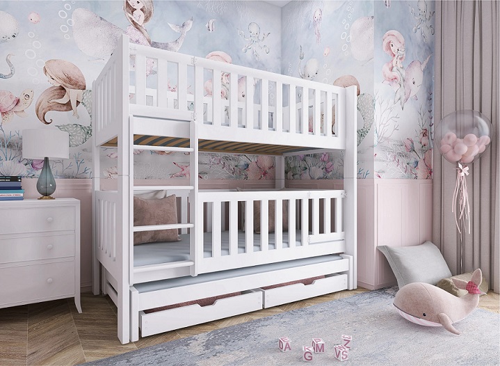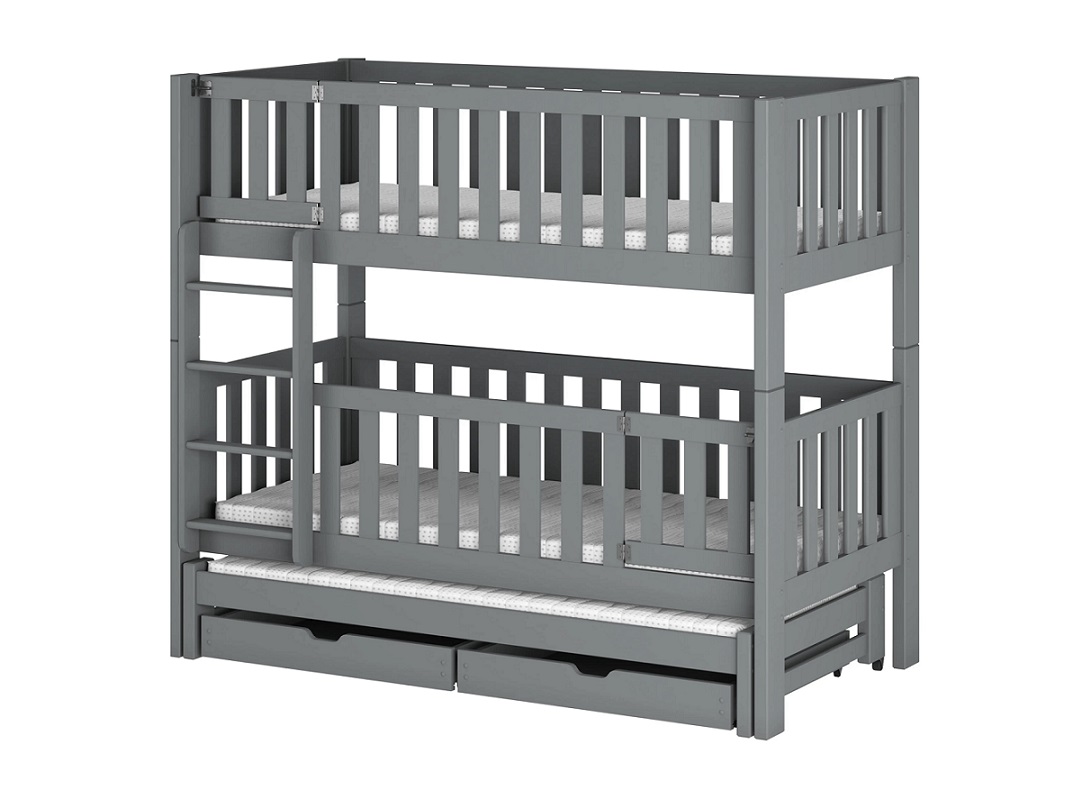 Den stora fördelen med denna modell är de höga räcken som gör att den passar utmärkt till de mindre barnen! Entré med lås finns på båda sängarna så att dina barn kan känna sig lite extra trygga när de sover.