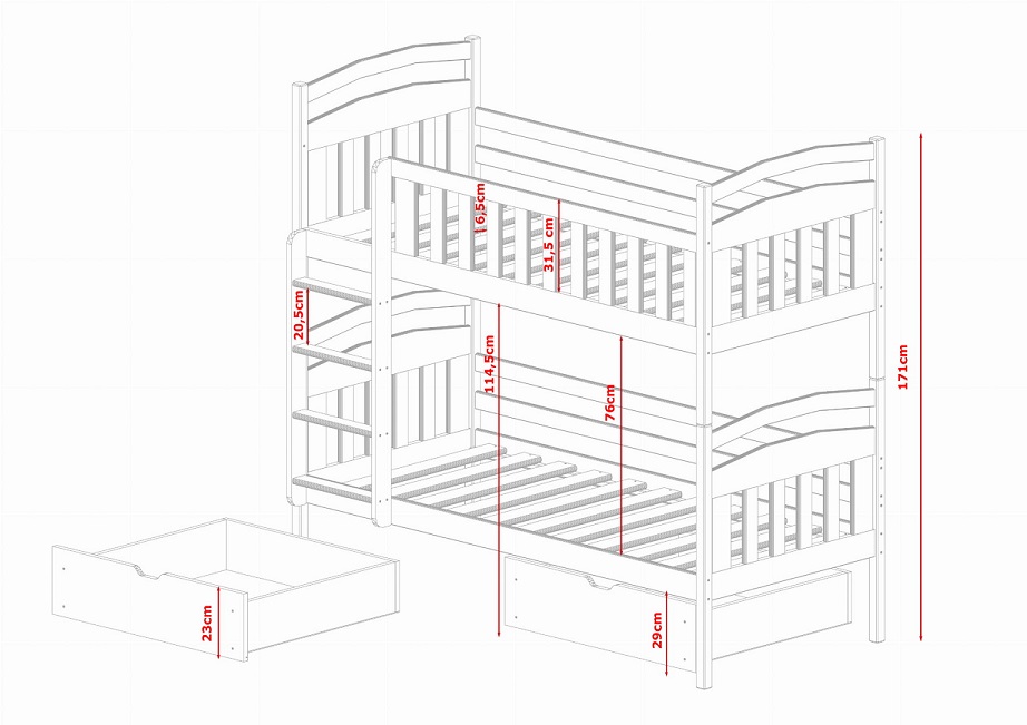 - Stödbrädan på den nedersta sängen är avtagbar.