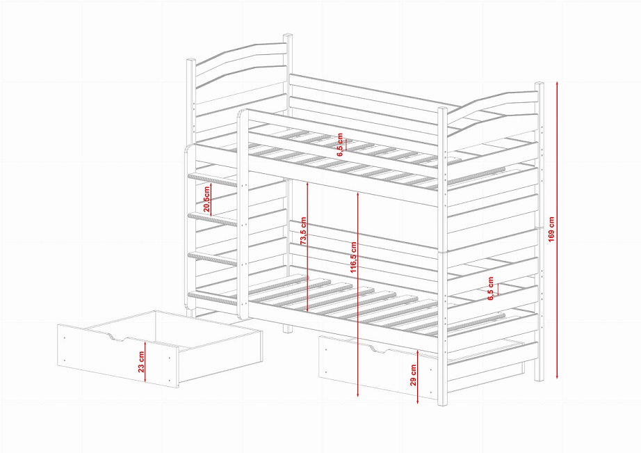 Sängarna tillverkas enligt standarden EN-747-1: 2012 + A1: 2015 i vår fabrik i Europa som har de högsta säkerhetsstandarderna för produktion av barnsängar. och kontrollerar varje steg från det att timret kommer in i fabriken till att en färdig produkt lämnar. Sängarna lackeras tre gånger med ekologisk, miljövänlig och vattenbaserad färg som följer normen EN 71-3:2019.