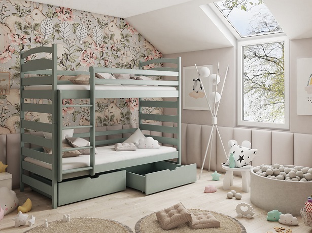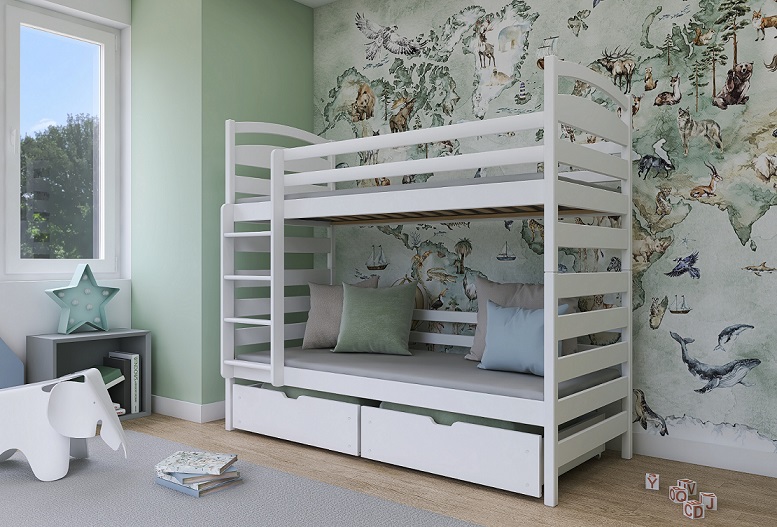 På vår fina syskonsäng Sonny har man tänkt till ordentligt för att optimera golvytan i barnrummet. Vi lovar att sängen kommer bli ditt barns favorit, och inte bara för att sova i då den med enkla medel kan bli en riktigt bra myshörna. Många dekorerar med sänghimlar, vimplar eller ljusslingor, bara din kreativitet sätter stopp.