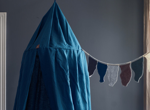 Denna vimpel tillhör den så kallade ”Mood”-serien. Denna serie är skapad för föräldrar som vill ha det bästa för sina barn. Hela kollektionen är gjord i 100 % linne vilket ger den en mycket speciell karaktär. Linne är nämligen ett levande naturmaterial med otroliga egenskaper och borgar för en lång hållbarhet. Det är svårt att hitta ett bättre material för att skapa den harmoni man vill ha i barnrummet. Alla produkter i denna serie är tvättbara i 40 grader.