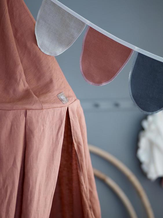 Denna vimpel tillhör den så kallade ”Mood”-serien. Denna serie är skapad för föräldrar som vill ha det bästa för sina barn. Hela kollektionen är gjord i 100 % linne vilket ger den en mycket speciell karaktär. Linne är nämligen ett levande naturmaterial med otroliga egenskaper och borgar för en lång hållbarhet. Det är svårt att hitta ett bättre material för att skapa den harmoni man vill ha i barnrummet. Alla produkter i denna serie är tvättbara i 40 grader.