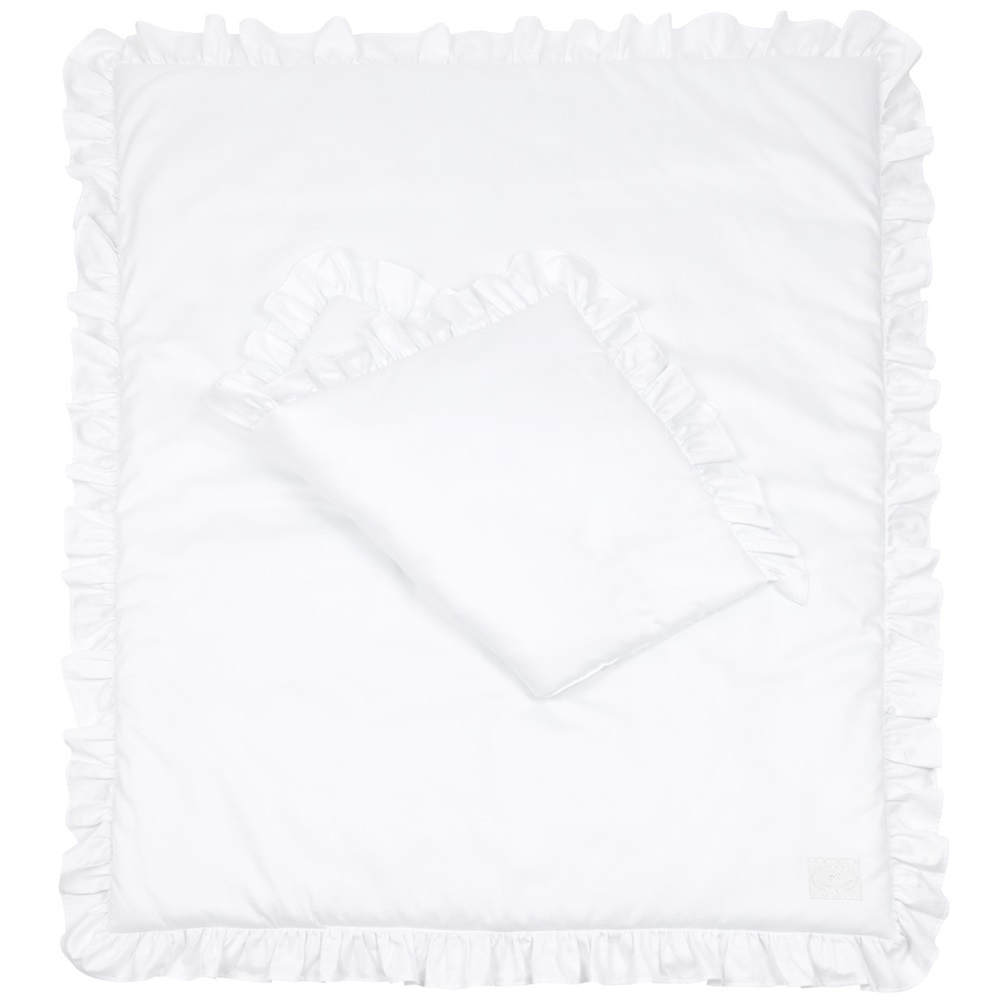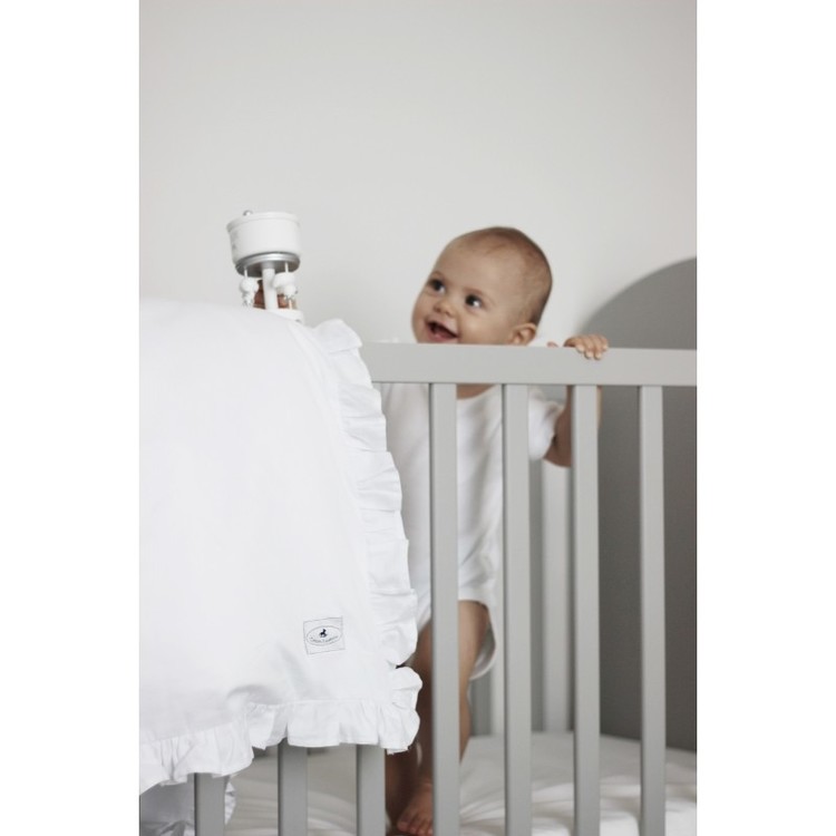 Vit bäddset spjälsäng med kudde och täcke med volang, Cotton and Sweets