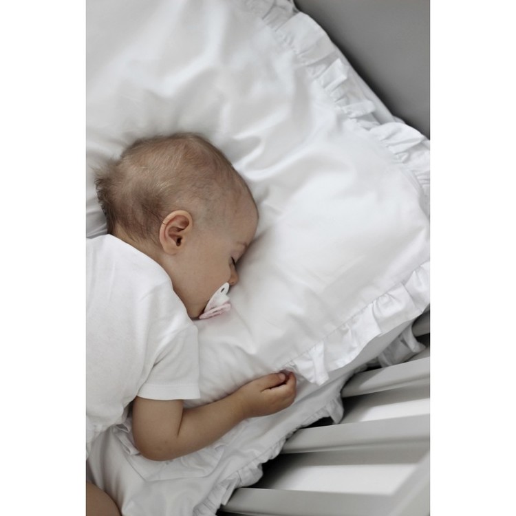 Överraskande vackra sängkläder av bomullssatin ger det bästa till ditt barn. Med vackra volanger på kanterna kommer det även att passa väl in i din barnrumsinredning. Kudden är platt vilket gör ditt spädbarns sömn säker och trygg. Täcket är tvättbart och håller även det formen. Bäddsetet passar perfekt i en spjälsäng av standardmått.