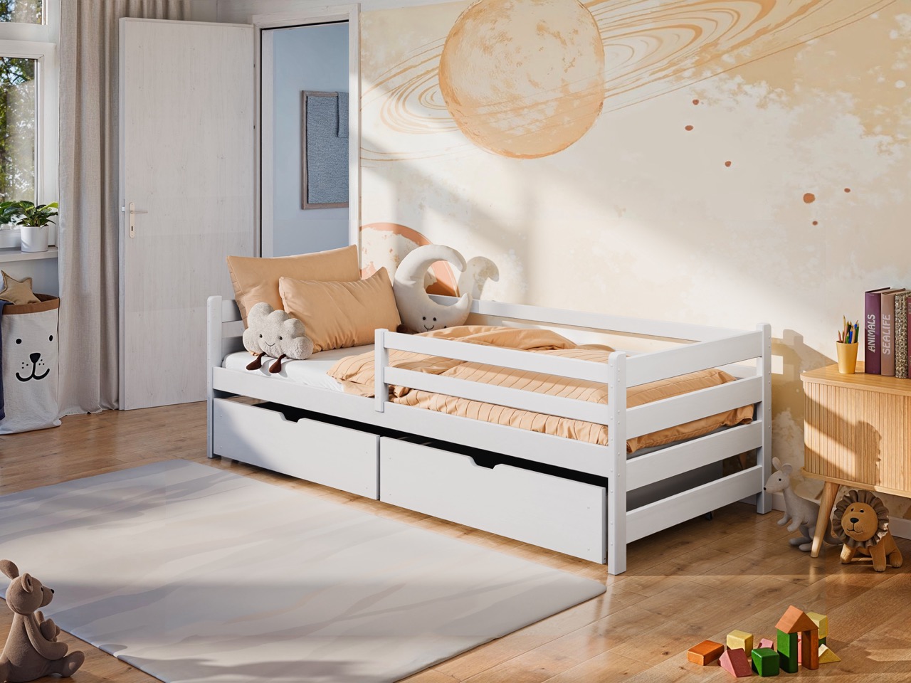 Vit barnsäng Liora 90×200 med förvaringslådor