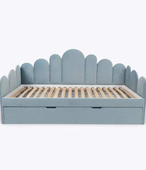 Den stora fördelen med denna modell är de det höga och långa räcket som gör att den passar utmärkt till de mindre barnen! Stödbrädan är avtagbar och sängen kan även användas som en dagbädd eller kökssoffa när barn blivit större.