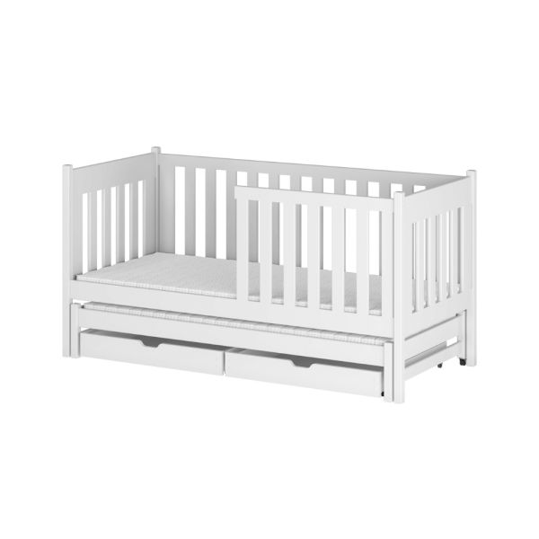 Vit barnsäng med stödbräda och extrasäng, Kiara 90×200