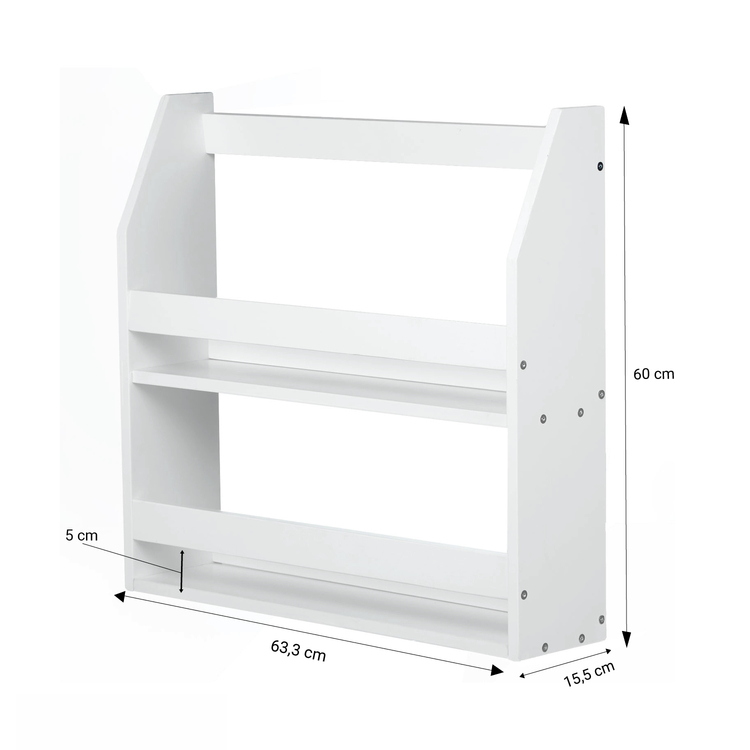 En fin och enkel bokhylla för barnrummet. Det är en rymlig bokhylla där barnet kan lagra sina mest värdefulla och finaste böcker. Mått: 63 x 60 x 15,5 cm Material: Trä