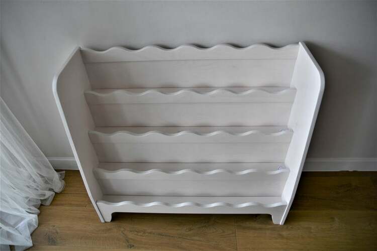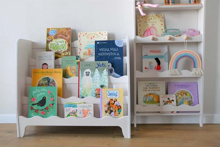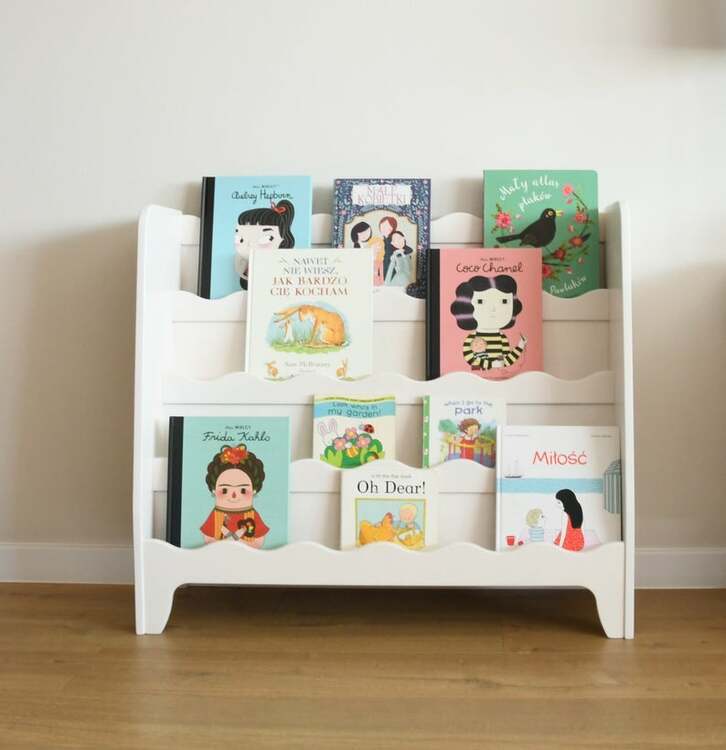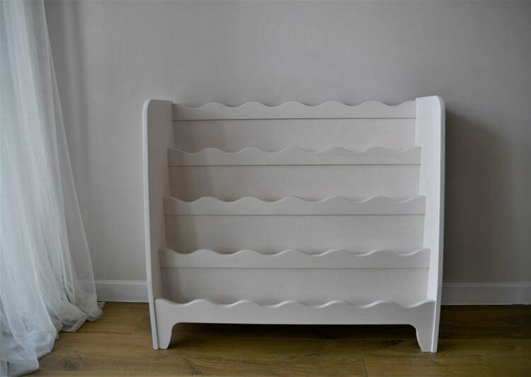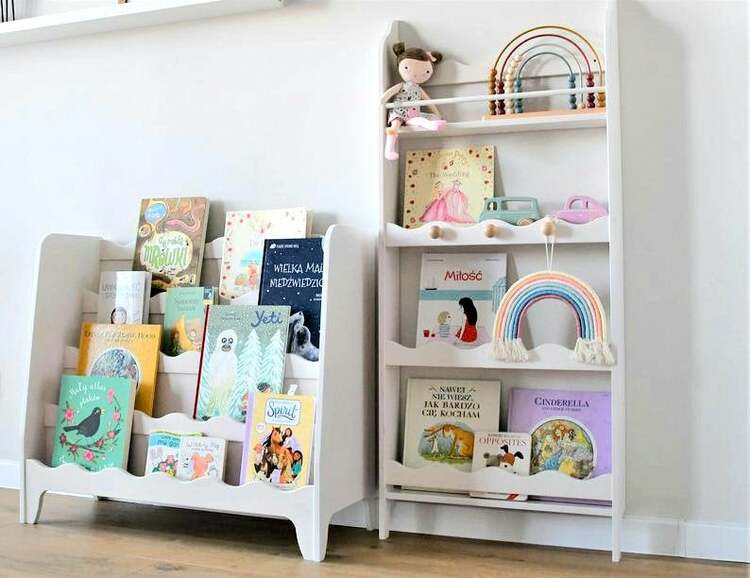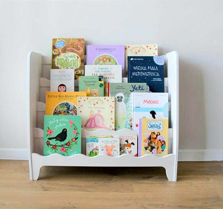 En praktisk och fin bokhylla . I den här kan du enkelt förvara inte bara böcker utan även favorita leksaker.