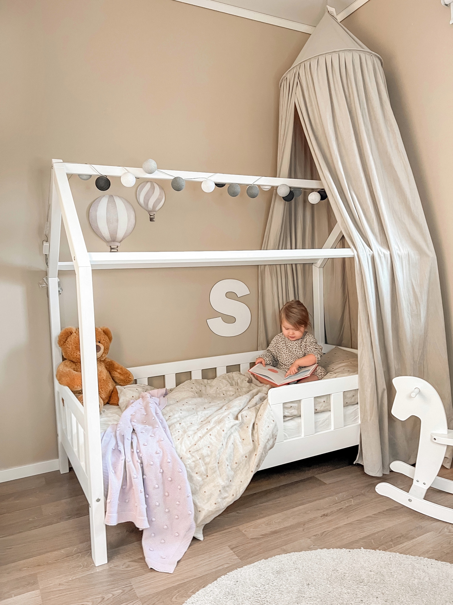 En optimal kombination av koja på dagen och sovplats på kvällen får ni i form av denna vackra hussäng.