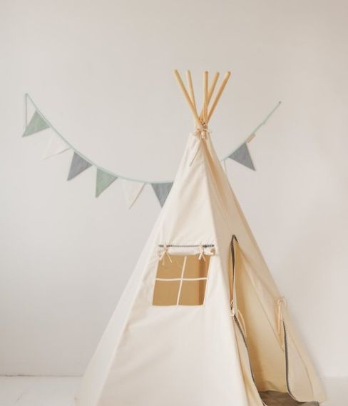 En säng i skandinavisk stilren stil som passar överallt och i alla typer av rum. Du kan enkelt dekorera den med fina vimplar eller ljusslingor för att få mer effekt.
