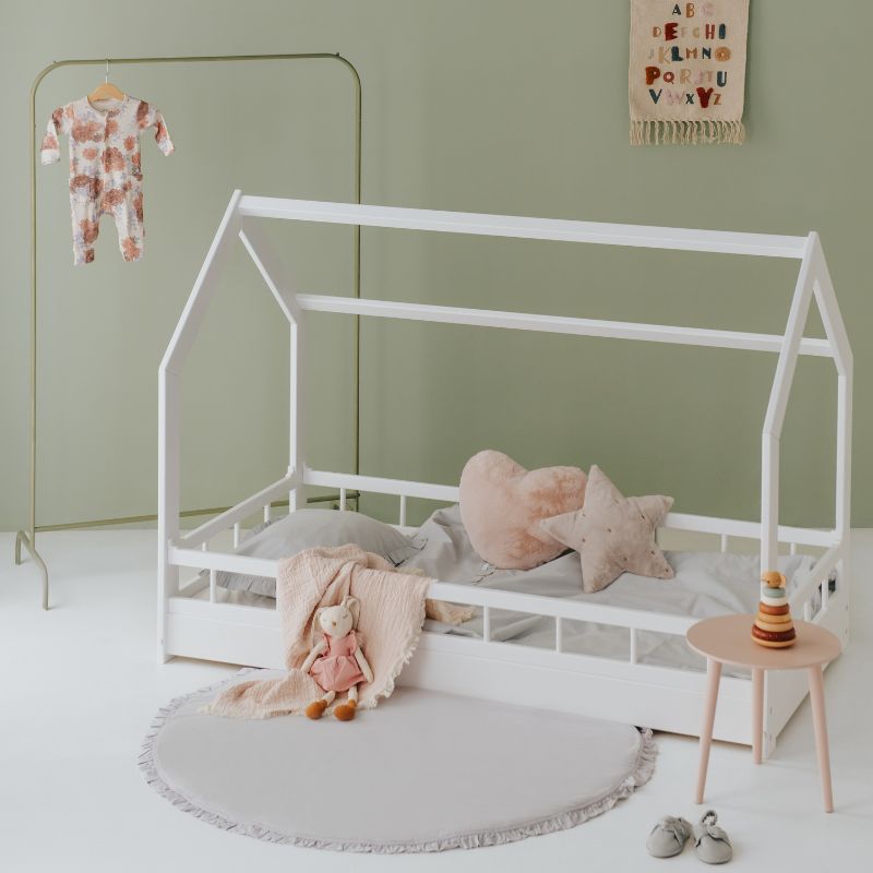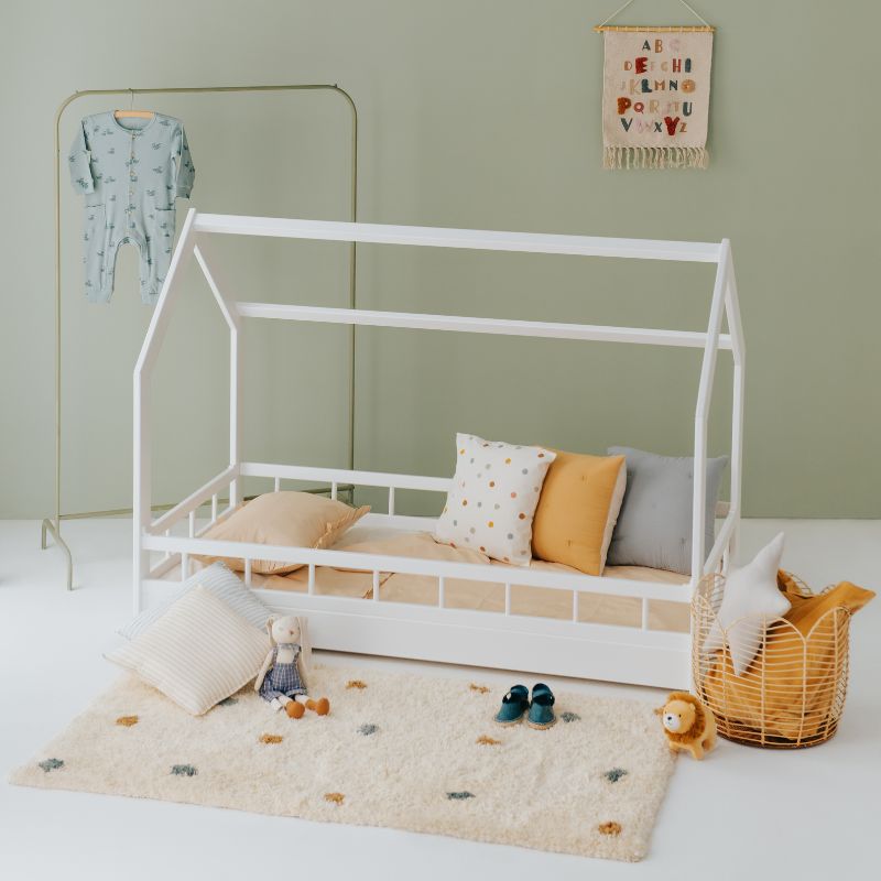 Denna stabila hussäng med skydd är perfekt när det är dags att byta ut spjälsängen.