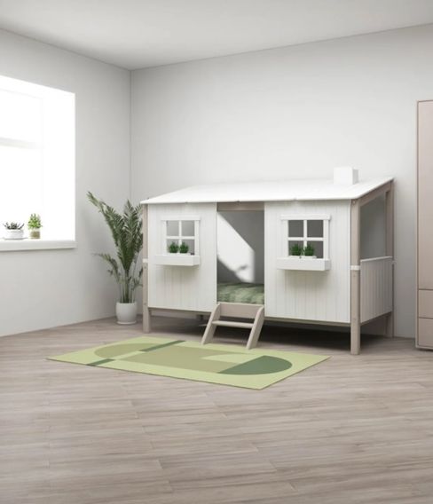 En underbart fin och praktisk säng med en utdragbar extrabädd. Denna säng ger en härlig känsla till hela barnrummet, då ditt barn kan leka i den eller skapa en alldeles egen favoritmyshörna , gärna med hjälp av några fina dekorationer. Perfekt för syskonen i ett litet rum, eller för ditt barns vänner när de ska sova över.