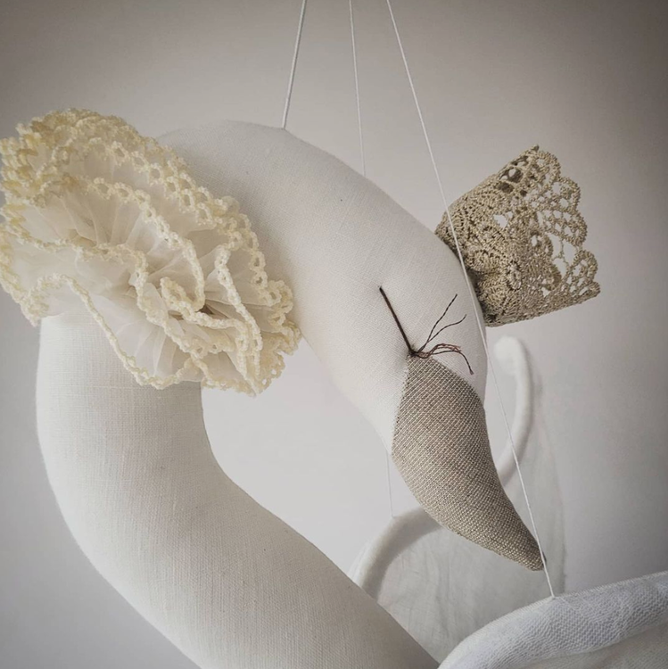 En underbar dekoration i form av en svan, som är fantastisk mjuk och mysig, då den är helt gjord av linne.