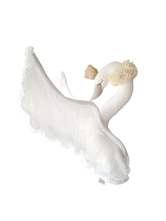 Denna magiska svan hängs enkelt upp i taket och ser ut att sväva. En underbar dekoration i form av en svan, som är fantastisk mjuk och mysig, då den är helt gjord av linne.Mått:40×50 cm Produkten är förberedd för att hänga upp på väggen/taket med påsydda hängare. Krok ingår ej.Designer: Love me decoration