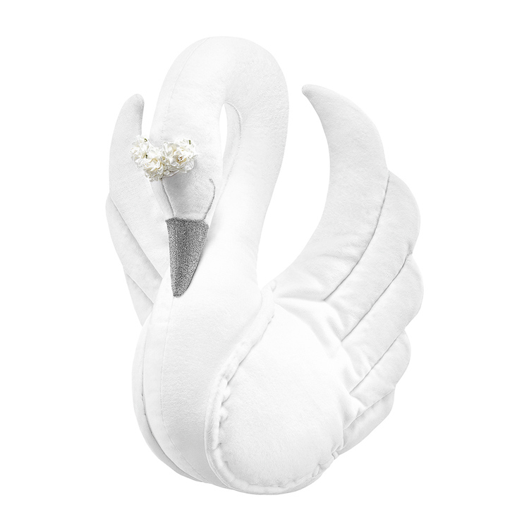 En underbar väggdekoration i from av en svan, som är fantastisk mjuk och mysig, då den är helt gjord av sammet. Förutom mysighetsfaktorn, kommer den även att bli en mycket fin detalj i barnrummet, och du placerar den där den får en framskjuten plats. Svanen är förberedd för att hänga på väggen, då den har hängare fastsydda, och du kan hänga den på en krok som du limmar på väggen (då den inte väger så mycket). Hur enkelt och fint som helst.