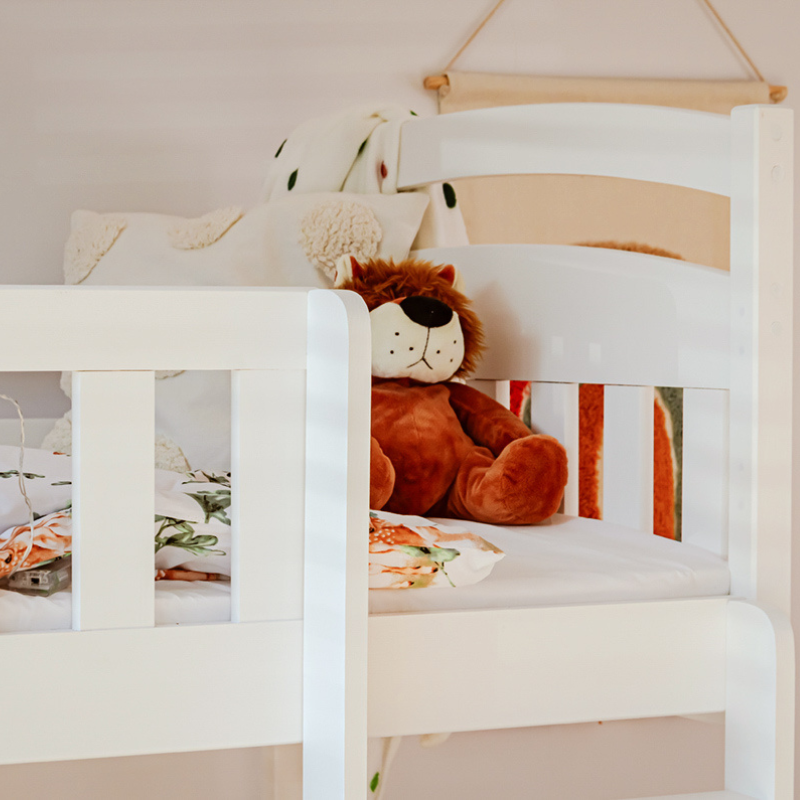 På vår fina våningssäng Indigo har man tänkt till ordentligt för att optimera golvytan i barnrummet. Vi lovar att sängen kommer bli ditt barns favorit, och inte bara för att sova i då den med enkla medel kan bli en riktigt bra myshörna. Många dekorerar med sänghimlar, vimplar eller ljusslingor, bara din kreativitet sätter stopp.