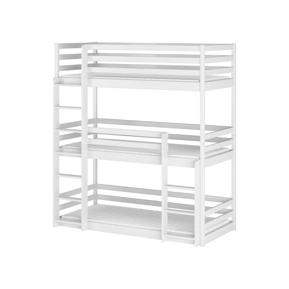 Vit våningssäng med tre sängar, Tony 90×200 cm