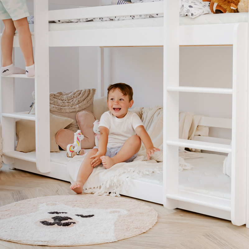 På vår fina syskonsäng Tony har man tänkt till ordentligt för att optimera golvytan i barnrummet. Vi lovar att sängen kommer bli dina barns favorit, och inte bara för att sova i då den med enkla medel kan bli en riktigt bra myshörna. Många dekorerar med sänghimlar, vimplar eller ljusslingor, bara din kreativitet sätter stopp.