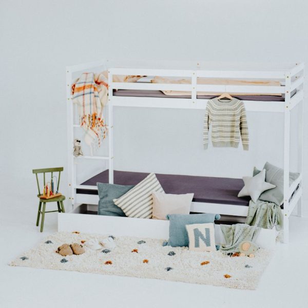 Vit våningssäng till barnrummet med förvaringslåda 90×200