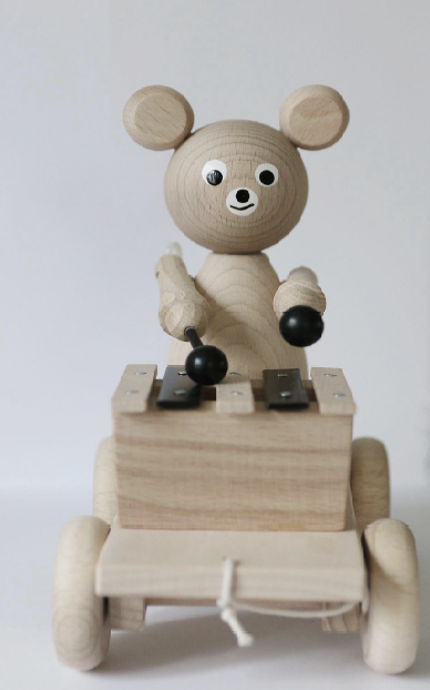 En underbart fin och fantastisk träleksak från Ella & Frederik, i formen av en nalle och hans Xylofon som följer med när barnet drar den över golvet.