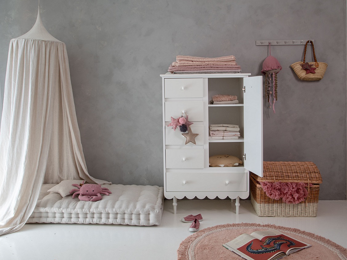 En fantastisk fin byrå eller fint skåp till barnrummet, med denna underbara möbel i romantisk stil kommer du  lyfta din barnrumsinredning till himmelska höjder.
